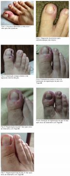 Após tomar vacina antitetânica e fazer uso de antibióticos de uso oral e tópico sem sucesso, tive que ser submetida a uma cantoplastia, que é uma pequena intervenção cirúrgica para retirada de um fragmento de unha encravado no meu hálux, ou seja, "dedão" do pé direito.